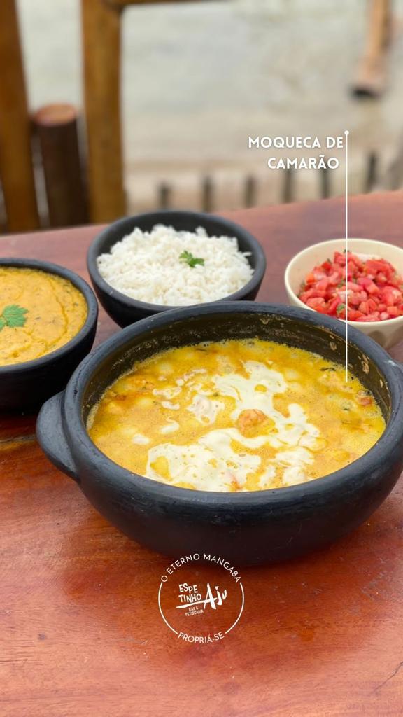 Deliciosa moqueca de camarão com queijo.Acompanha arroz, pirão e vinagrete. Serve até 03 pessoas