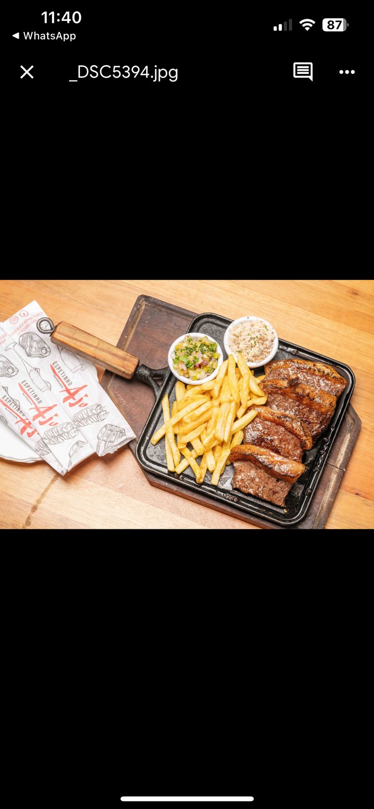 Delicioso corte de picanha. Acompanha batata frita, cebola grelhada, arroz, feijão tropeiro ou caldo , vinagrete e farofa.