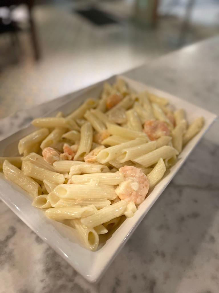 MASSA AO MOLHO BRANCO COM CAMARÃO, SERVE 2 PESSOAS.