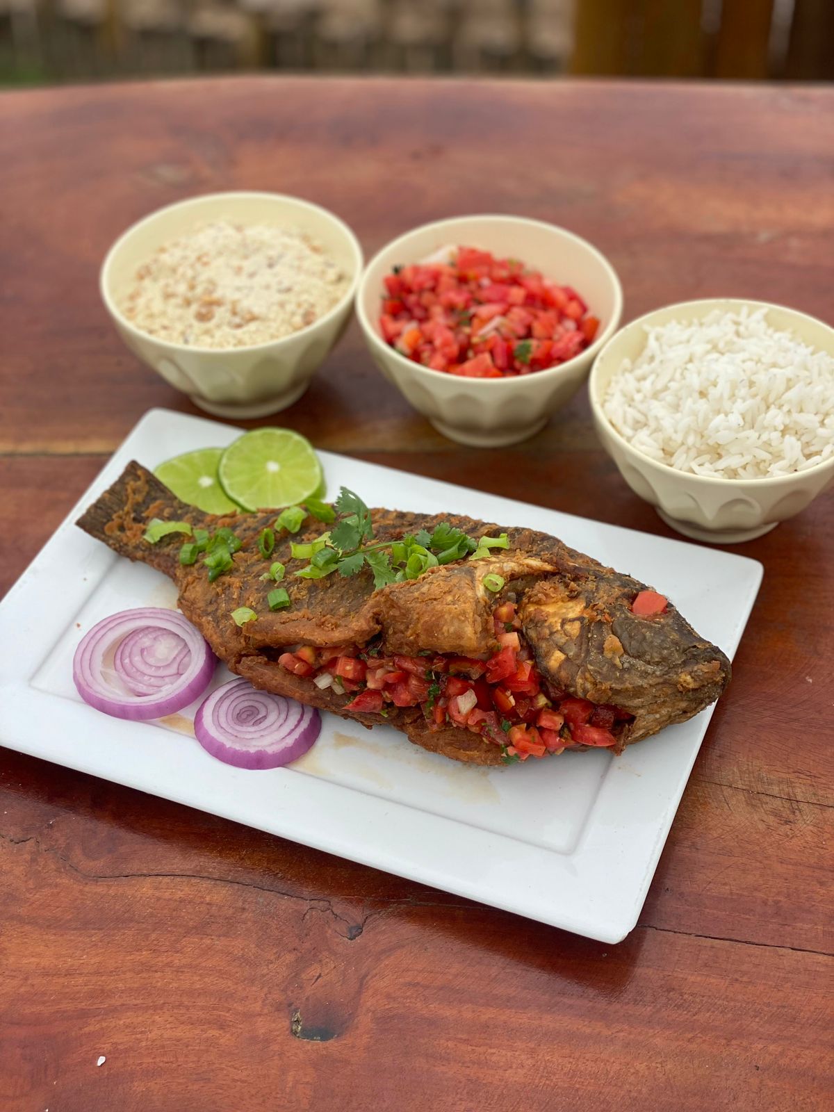 Serve até 03 pessoas. Acompanha arroz, vinagrete e pirão